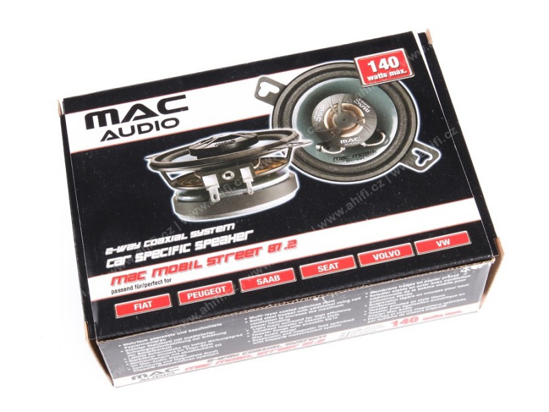 Reproduktory Mac Mobil Street 87.2 poskytujú skvelé riešenie pre výmenu pôvodných reproduktorov v aute s minimálnym priemerom 87 mm. Ponúkame vám menšie rozmery bez zníženia kvality - lisovaná a lakovaná papierová membrána s ľahkým penovým závesom pre vysokú účinnosť a pevný eloxovaný oceľový kôš s prídavným odvetraním kmitacej cievky. Výškový reproduktor titánového vzhľadu má navyše špeciálnu plastovú prírubu pre optimálnu kvalitu zvuku v dizajne Mac Audio.