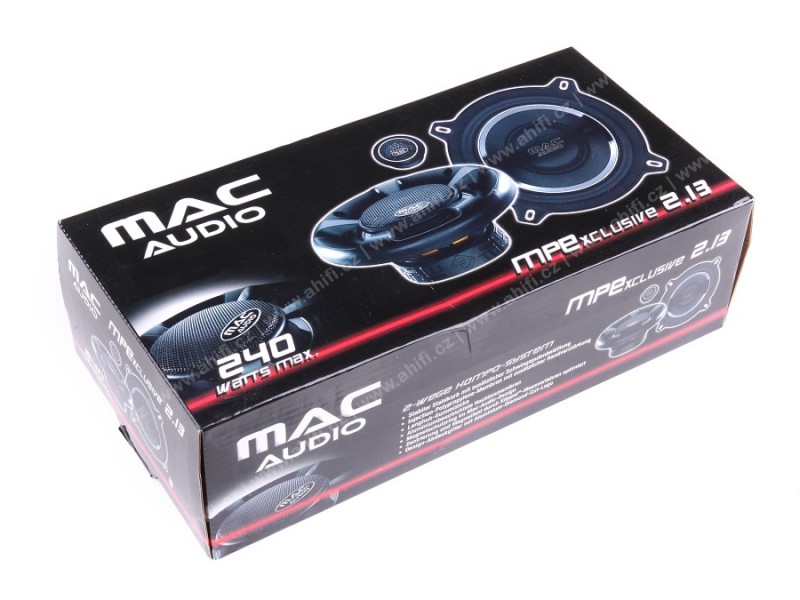 Výhodou systému 2-pásmových komponentných reproduktorov MPE 2.13, je bezpochyby vstrekovaná polypropylénová membrána so zvýšenou výstužou hrán. Toto účinne eliminuje rušivé čiastkové vibrácie a vytvára prirodzený zvuk . výškový reproduktor potiahnutý hliníkovou vrstvou, kvalitné gumový záves a systémom KLIPPEL optimalizovaný výkon a magnetické pole reproduktora. Súčasťou balenia je dizajnová plastová ochranná mriežka s gravírovaným logom Mac Audio. Reproduktory Mac Audio, ktoré zaručujú dlhú životnosť a výdrž !