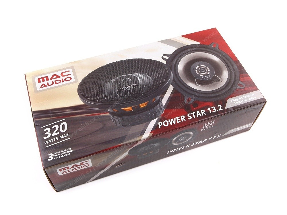 Zvukovo, dizajnovo a výkonovo populárny rad reproduktorov Mac Audio - to je séria Power Star. Model s označením 13.2 sú 2pásmové, koaxiálne reproduktory, ktoré majú až 320 W maximálny výkon v širokom frekvenčnom pásme. Disponujú odolným gumovým závesom, ktorý je nalepený na ľahké a stabilné polypropylénovej membráne. Systém reproduktora je vyrobený tak, že sa kmitacia cievka samovoľne chladí. Zo zadnej časti reproduktora vás poteší gravírované logo značky. Celý systém bol optimalizovaný pomocou merania Klippel pre dokonalý zvuk v danej cenovej relácii. Súčasťou balenia je aj pevná krycia mriežka s logom značky. Podrobné predstavenie celej série Power Star môžete nájsť v našom blogu kde sme sa o tomto modelovom rade rozpísali.