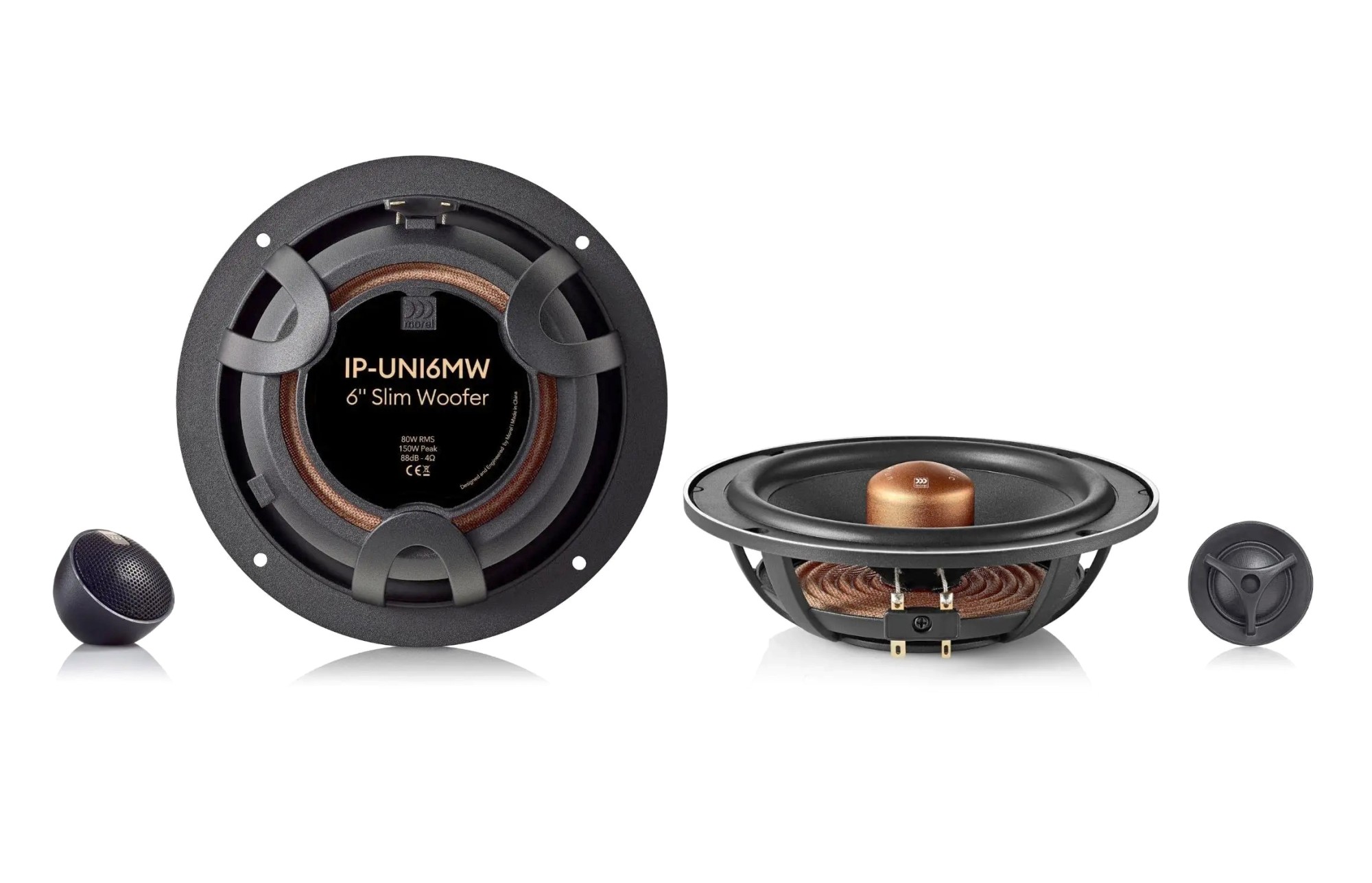 Morel IP-UNI62 je dvojpásmový univerzálny komponentný systém z rady Integration Performance, navrhnutý tak, aby poskytoval artikuláciu, dynamiku a prirodzený zvuk, ktorým je Morel preslávený. Vďaka dvojici ultratenkých 6,5" (165 mm) stredobasových reproduktorov je systém kompaktný a veľmi ľahko integrovaný do širokého spektra továrnych dverných pozícií bez nutnosti zásadných úprav. Rovnako ako u ostatných systémov Morel Integration Performance je aj tu kladený maximálny dôraz na OEM inštaláciu – stredobasy si zachovávajú montážne rozmery, tweeter je kompaktný a in-line výhybky výrazne zjednodušujú montáž. Integračné systémy je možné bez problémov napájať ako z továrneho autorádia, tak z dodatočne inštalovaného zosilňovača. IP-UNI62 sľubuje špičkový zvuk vo svojej triede – stačí jedno počúvanie a budete súhlasiť.