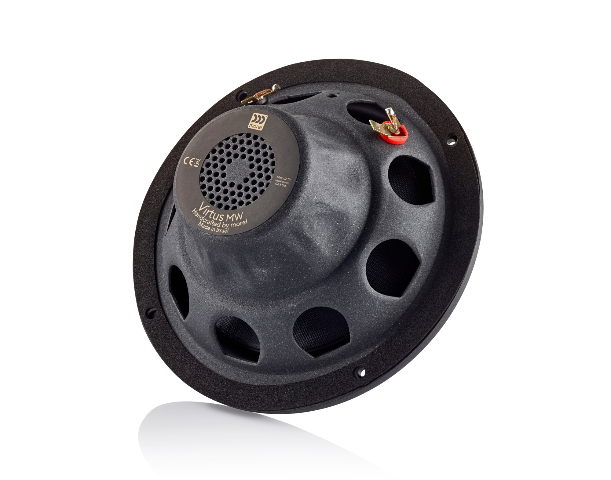 Výškové reproduktory MT120N, ktoré sú dôležitou súčasťou reproduktorového systému Morel Virtus, sú vybavené ručne potiahnutou hodvábnou kalotou s vysokým rozlíšením a patentovanou povrchovou úpravou Acuflex™. Výškové reproduktory ponúkajú vynikajúci vysokofrekvenčný výkon pri veľmi nízkej úrovni skreslenia v kompaktnom prevedení. Hliníková kmitacia cievka s priemerom 28 mm spolu s výkonným neodymovým magnetom a nízkou rezonančnou frekvenciou zabezpečujú vysoký výkon a minimálne skreslenie. Malé rozmery výškového reproduktora umožňujú bezproblémovú montáž do továrenských pozícií vozidla s možnosťou povrchovej alebo zapustenej montáže. Súčasťou je aj krásna lotosová mriežka poskytujúca elegantný vzhľad vhodný pre moderné vozidlá. Nejde však len o pôsobivý dizajn. Špecifický vzor otvorov rôznych tvarov a priemerov je navrhnutý tak, aby sa minimalizoval efekt „rohu“. Ide o vysokofrekvenčný výkyv spôsobený rezonančnou frekvenciou v mriežkach s rovnakými rozmermi otvorov, ktoré poznáme prakticky zo všetkých reproduktorov.Stredotónové reproduktory Morel Virtus MW6