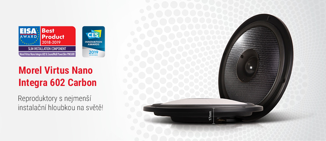 Stredobasový reproduktor je postavený na veľmi unikátnom a šikovne navrhnutom oceľovom ráme. Cievka s vonkajším priemerom 2,1" (54 mm) využíva technológiu Hexatech™ a magnetický systém so zliatinovým magnetom umožňuje vysoký výkon a vynikajúce rozlíšenie. Inovatívny "Grand-dome" membrána reproduktora Virtus Nano má konvexný tvar, ktorý je opakom väčšiny bežných membrán. Tento tvar bol vybraný, pretože zvýšil účinnú oblasť reprodukcie a testovanie ukázalo, že vytvoril zlepšenú basovú odozvu. Nová technológia patentu Z.P.I. (Zero Point Integra) umožňuje integráciu výškového reproduktora s hodvábnou kalotou do stredu stredobasového reproduktora, ktorý ponúka prirodzenú reprodukciu zvuku a lepšie tonálne vyváženie v celom počuteľnom frekvenčnom rozsahu. Akustické vlastnosti Virtus Nano Integra spojené s jeho minimálnymi rozmermi umožňujú montážnym pracovníkom ľahšiu montáž v akomkoľvek automobile, a to bez obmedzenia vysokého výkonu. Reproduktory Morel Virtus Nano Integra 602 Carbon sľubujú nezabudnuteľný hudobný zážitok.