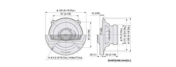 50 W RMS, 89 dB (SPL 2,83V / 1m), 4 Ω, montážna hĺbka 53 mm