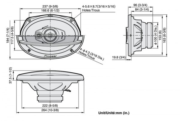 90 W RMS, 91 dB (SPL 2,83V / 1m), 4 Ω, montážna hĺbka 84 mm