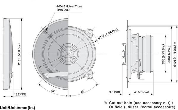 25 W RMS, 86 dB (SPL 2,83V / 1m), 4 Ω, montážna hĺbka 46,5 mm