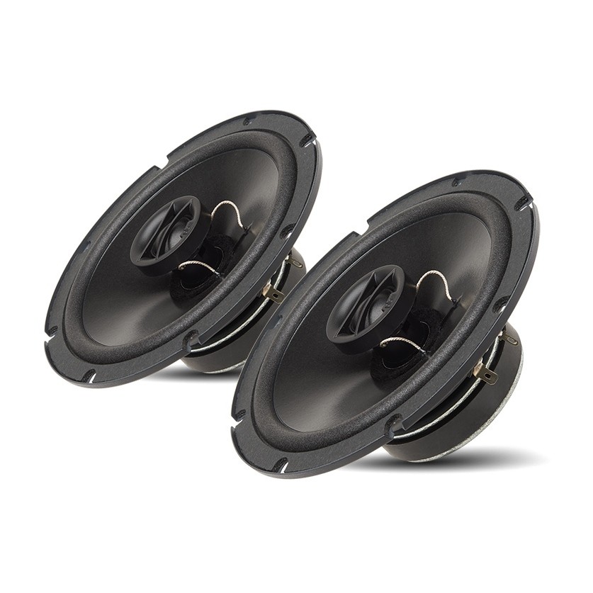 | Typy reproduktorov Koaxiálne reproduktory: Koaxiálne reproduktory sa vyznačujú konštrukciou tzv. Všetko v jednom. Výškový a stredobasový reproduktor sú v jednom koši. Výhodou je jednoduchšia montáž, ale vďaka spojeniu resp. blízkosti pásiem v jednom reproduktore, sa zvyčajne zníži kvalita zvuku. Spravidla uprostred stredobasového reproduktora, je výškový reproduktor, ktorého kmitacia cievka pracuje v druhej vzduchovej medzere spoločného magnatického obvodu. Trojpásmový koaxiálny reproduktor sa skladá zo stredobasového reproduktora, v predu na osobitnom nosníka je stredový reproduktor a samostatný výškový. Komponentné reproduktory: Komponentné reproduktory sa vyznačujú rozdelením na jednotlivé frekvenčné pásma, výškové + stredobasové + popr. basové pásmo. Jednotlivé reproduktory sa dajú umiestniť úplne oddelene, čo má za výsledok lepší zvukový aj akustický prejav. V drvivej väčšine prípadov komponentných reproduktorov je dodávaná aj externá výhybka, ktorá rozdeľuje výškové, stredové / stredobasové a u třípásma aj basové pásmo popr. umožňuje nastavenie decibelovej úrovne u výškového reproduktoru (napr. +2 dB, 0 dB, -2 dB), strmosti (napr. 6dB / okt. 12dB / okt.) či aktívne alebo bi-amp zapojenia. | Koaxiálne 2pásmové |