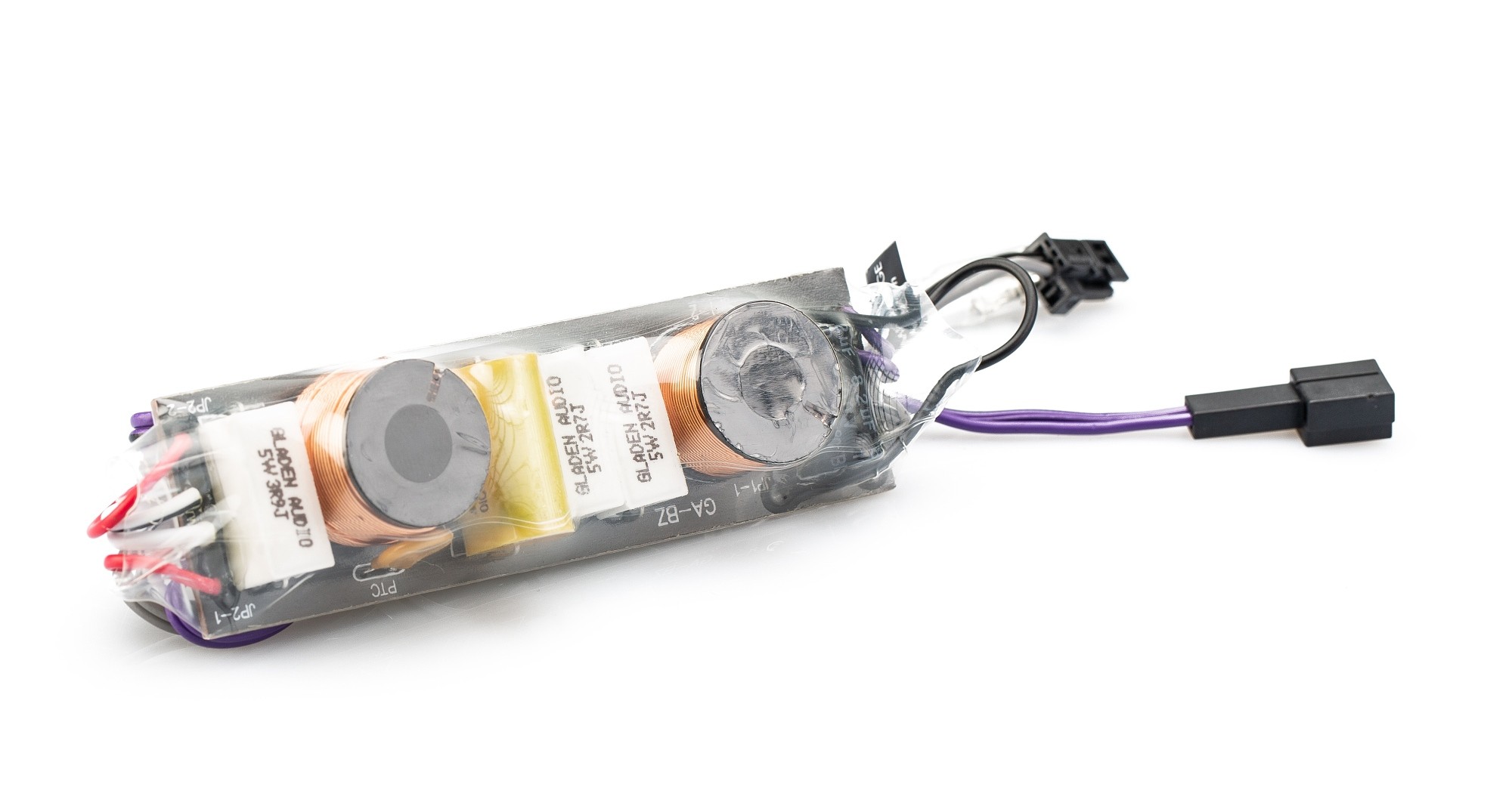 | Frekvenčná výhybka súčasťou Frekvenčná výhybka je dôležitou súčasťou defacto všetkých reproduktorov. Výhybka zvyčajne obsahuje rôzne hodnoty odporov, veľkosti cievok a typy kondenzátorov, ktoré celkom zásadne upravujú zvuk. Na čo výhybky slúžia popisujeme nižšie. Komponentné reproduktory: Súčasťou každého kvalitné komponentného reprosystému je výhybka. Jej úlohou je zabezpečiť rozdelenie frekvencií, ktoré zosilňovač produkuje v celom akustickom spektre kmitočtov tak, aby každý z reproduktorov dostal len tú časť pásma, ktorú môže optimálne zahrať z hľadiska účinnosti a minimálneho skreslenia. Koaxiálne reproduktory: U koaxiálnych reproduktorov býva z väčšiny prípadov jednoduchá výhybka (6dB / okt.) Tvorená kondenzátorom u výškového reproduktora. | Áno |