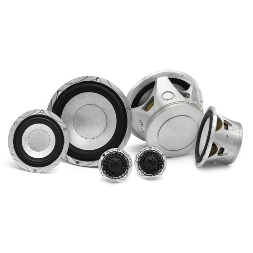Súčasťou najvyššieho radu Opus sú stredobasové, stredové a výškové reproduktory obrábané z jedného kusu hliníkového bloku. Zaujímavosťou je, že hliníkový blok pre stredobasový reproduktor už nie je možné znovu využiť na výrobu menších komponentov, ako sú stredové a výškové reproduktory. A to aj napriek tomu, že z pôvodnej hmotnosti hliníkového bloku (6265 g) sa využije iba necelých 12% (744 g). Kôš z jedného kusu hliníka nemá žiadne tolerancie k strate výkonu pri pohybe membrány a je úplne imúnny voči všetkým vibráciám. Zároveň zaisťuje optimálne prúdenie vzduchu a vynikajúci odvod tepla z kmitacej cievky vďaka piatim obrovským otvorom medzi spiderom a magnetickým systémom. Dizajn reproduktorov podčiarkujú káblové terminály v tvare metronómu, ktoré sú vybrúsené z mosadze a následne poniklované. Pre zaistenie maximálnej vernosti zvuku bola zvolená pri stredobasových a stredových reproduktoroch tradičná papierová membrána v striebornom prevedení, ktoré perfektne ladí s hliníkovým košom. Taktiež výškové reproduktory s hodvábnou kalotou s priemerom 28 mm sú vyrobené z jedného bloku hliníka. Napriek svojim malým rozmerom obsahuje výškový reproduktor prázdnu komoru na zadnej strane magnetu, ktorá umožňuje výškovému reproduktoru dosiahnuť reprodukciu aj nižšie frekvencie, čo oceníte najmä pri dvojpásmovom systéme. Integrované konektory boli navrhnuté tak, aby ponúkali ucelenú estetiku a zároveň čo najmenší objem reproduktorov.