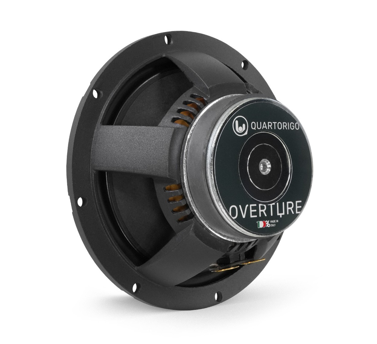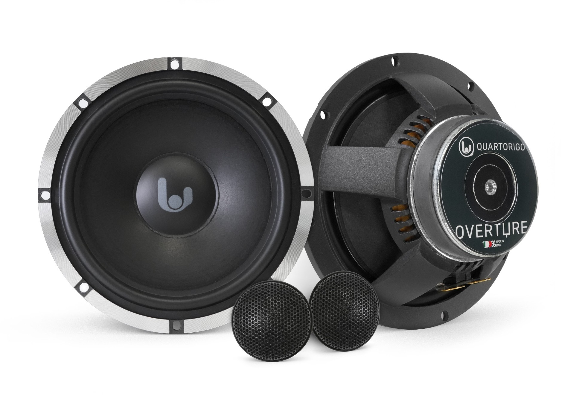 Modelový rad Overture od Quartorigo bol vytvorený preto, aby ohromil všetkých nadšencov kvalitného zvuku vo viac ako dostupnej cenovej kategórii.Overture, teda anglicky predohra, predstavuje základné reproduktory od Quartorigo, ktoré však boli vyvinuté pre audiofilný zvuk a výnimočný pôžitok z hudby. Inžinieri z Quartorigo urobili tiež maximum možného na to, aby tieto reproduktory nebolo nutné zapájať na zosilňovač a vystačili si vďaka vysokej citlivosti aj so slabším výkonom továrenských autorádií moderných vozidiel. Dôraz bol kladený aj na OEM vzhľad inštalácie s nízkou inštalačnou hĺbkou stredobasu a kompaktnými rozmermi výškového reproduktora. Všetko ostatné je typické Quartorigo so zameraním na mimoriadny hudobný zážitok. Papierová membrána stredobasu s vodeodolnou úpravou je vynikajúcou kombináciou ľahkosti, tuhosti a predovšetkým vernosti zvuku. To isté platí o hodvábnej kalote výškového reproduktora s výnimočnými vysokofrekvenčnými detailmi a príjemnou tonalitou. Za zmienku stojí aj veľmi nízka rezonančná frekvencia výškového reproduktora, ktorá umožňuje reprodukciu aj nižších frekvencií, čo oceníte najmä v dvojpásmovom systéme. Vo svojej cenovej kategórii je neobvyklé aj spracovanie liateho koša stredobasového reproduktora. Ten je výnimočne tuhý, eliminuje vibrácie a nedeformuje sa tak pri pohybe membrány, ako to býva v prípade klasických oceľových košov. Zároveň neznižuje magnetické pole a výrazne účinnejšie odvádza teplo z kmitacej cievky. Výsledkom je reproduktorový systém, ktorý prekvapí svojim pokročilým zvukom. A to ako pri zapojení na továrenské rádio, tak na externý zosilňovač. Garanciu vysokej kvality a perfektného spracovania zaisťuje medzinárodne uznávaná certifikácia 100% Made in Italy.