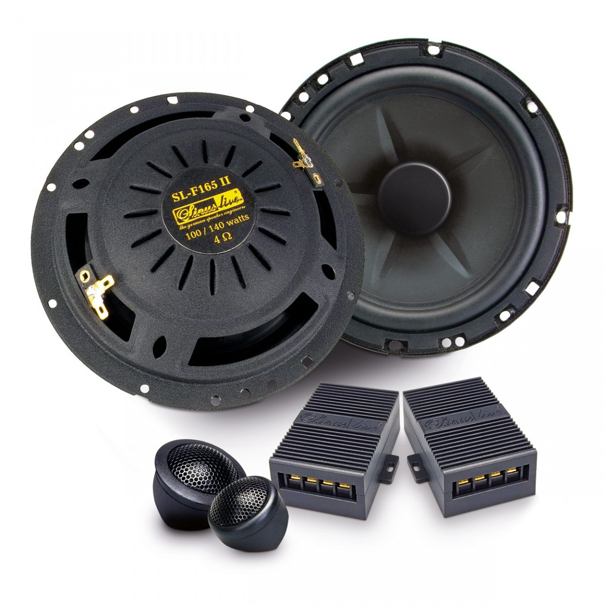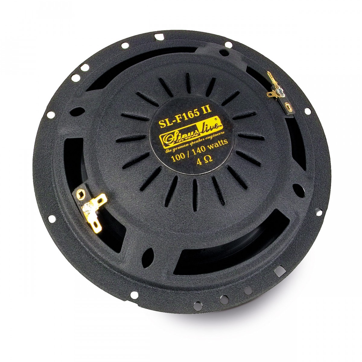 Ploché 165 mm reproduktory, ktoré majú montážnu hĺbku len 46 mm a ktoré sa zmestia aj do miest, kam sa iné reproduktory do auta jednoducho nezmestia. Reproduktory Sinus Live sú kvalitne postavené - polypropylénová membrána s gumovým závesom. Vetracie otvory v koši zaisťujú dobré vetranie a nízku kompresiu. Kmitacia cievka s dlhým zdvihom je vyrobená z vysoko epoxidového skleneného vlákna a reaguje veľmi spontánne a rýchlo na hudobné signály. Hodvábna kalota výškových reproduktorov dokáže verne prezentovať vysoké frekvencie. Medené pripojovacie fastony potom zaisťujú dokonalý prenos napájania, bez strát.| Katalógové číslo | 13782 |