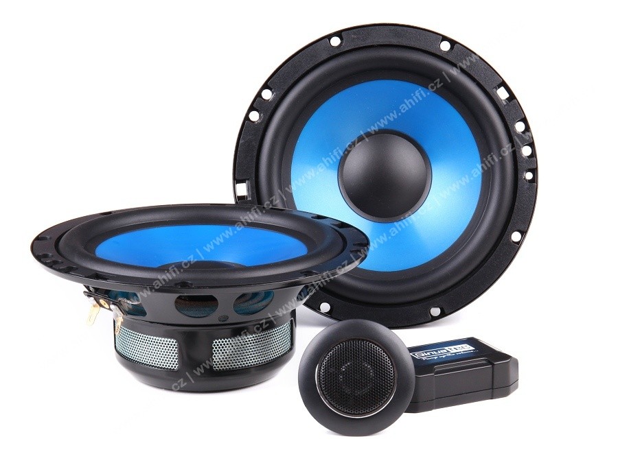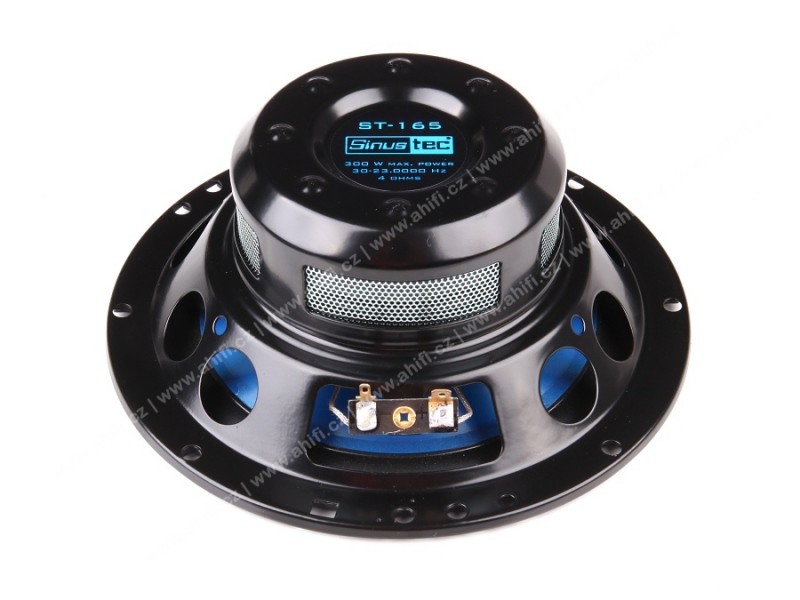 16,5 cm komponentné reproduktory Sinustec. Známe reproduktory s modrou membránou, ktoré sa vyznačujú svojou vysokou trvanlivosťou. Vysoký výkon 300 W pri maximálnom zaťažení. Modrá matná polypropylénová membrána a krycie mriežky v balení.