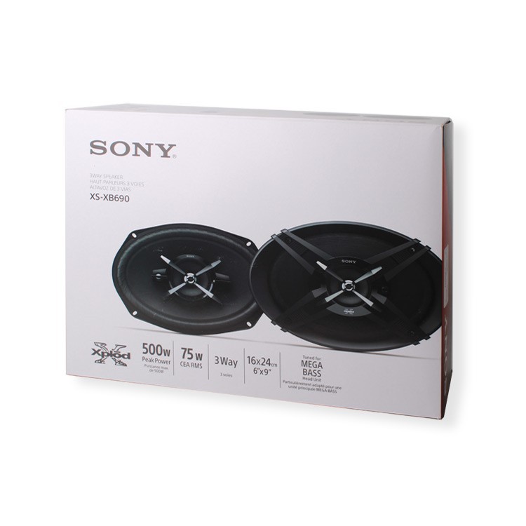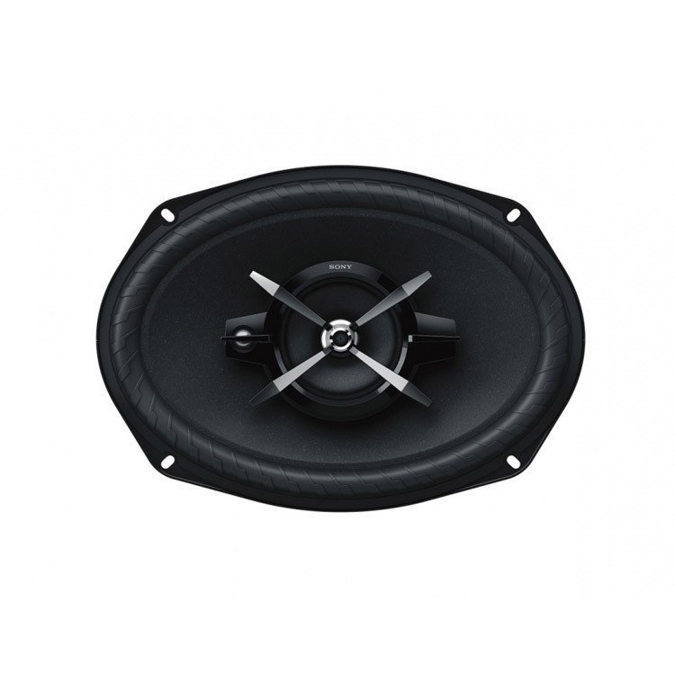 Trojpásmový koaxiálny reproduktor SONY, rozmer 16 x 24 cm, s hĺbkovým reproduktorom kužeľového typu, s výškovým reproduktorom s vyváženou kalotou, menovitý výkon 75 W.