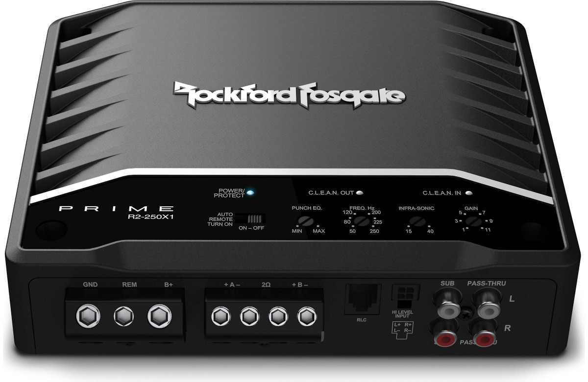R2-250X1 je 250wattový zosilňovač triedy D, ktorý je schopný pracovať pri 4 Ω alebo 2 Ω. Tento zosilňovač je mimoriadne efektívny vďaka svojej technológii triedy D, ktorá znižuje nároky na elektrický systém vozidiel. Zosilňovač tiež obsahuje C.L.E.A.N. obvody, ktoré vám pomôžu upraviť nastavenie zosilnenia a systém P.O.W.E.R. napájanie, ktoré generuje viac energie s rastúcim napätím, a integrovaný ekvalizér Punch, ktorý koriguje akustické nedostatky a dodáva až trojnásobné basy. Perfektný pre subwoofery, variabilný infrazvukový filter a diaľkové ovládanie úrovne vám umožní naladiť basy na požadovanú úroveň pre hudbu. Modely zosilňovačov Prime R2 sú vyvinuté pre automobilové audio fanatiky, ktorí chcú spoľahlivý zosilňovač za dostupnú cenu. Zosilňovače Rockford Fosgate sú celosvetovo preslávené tým, že sú „podhodnotené“, ľahko prekonávajú všetky špecifikácie, a čo je najdôležitejšie, generujú viac energie, než sú ich udané hodnoty. Tieto generácie zosilňovačov Prime Series sú tiež navrhnuté pre jednoduché nastavenie a konfiguráciu, takže sú ideálne na použitie s továrenskými audio systémami.