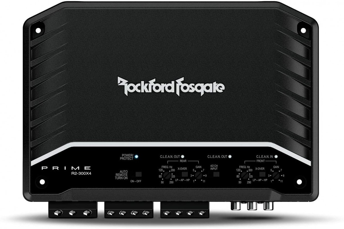 R2-300X4 je 300wattový zosilňovač triedy D s plným rozsahom, ktorý je schopný prevádzky pri 4 Ω, alebo 2 Ω stereo a 4 Ω premostené / mono. Tento zosilňovač je mimoriadne efektívny vďaka svojej technológii triedy D, ktorá znižuje nároky na elektrický systém vozidla. Zosilňovač tiež obsahuje C.L.E.A.N. obvody, ktoré vám pomôžu upraviť nastavenie zosilnenia a systém P.O.W.E.R. napájanie, ktorý generuje viac energie pri zvyšovaní napätia. Modely zosilňovačov Prime R2 sú vyvinuté pre automobilové audio fanatiky, ktorí chcú spoľahlivý zosilňovač za dostupnú cenu. Zosilňovače Rockford Fosgate sú celosvetovo preslávené tým, že sú „podhodnotené“, ľahko prekonávajú všetky špecifikácie, a čo je najdôležitejšie, generujú viac energie ako sú ich udané hodnoty. Tieto generácie zosilňovačov Prime Series sú tiež navrhnuté pre jednoduché nastavenie a konfiguráciu, takže sú ideálne na použitie s továrenskými audio systémami.