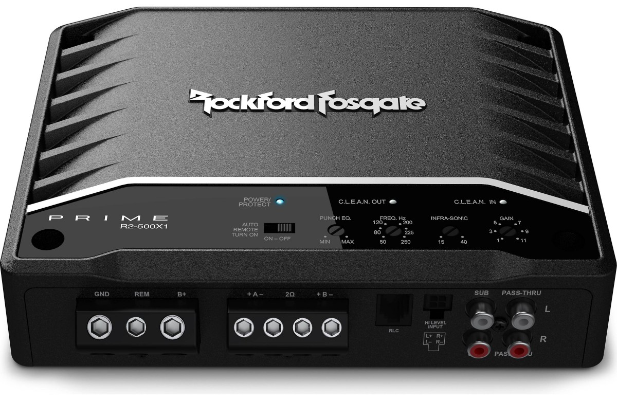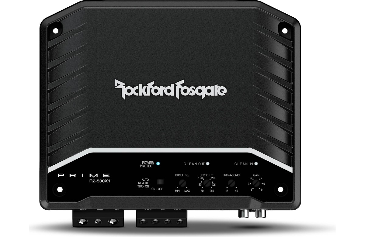 R2-500X1 je 500wattový zosilňovač triedy D, ktorý je schopný pracovať pri 4Ω alebo 2Ω mono. Tento zosilňovač je mimoriadne efektívny vďaka svojej technológii triedy D, ktorá znižuje nároky na elektrický systém vozidiel. Zosilňovač obsahuje C.L.E.A.N. obvody, ktoré vám pomôžu upraviť nastavenie zosilnenia a systém P.O.W.E.R. napájanie, ktoré generuje viac energie s rastúcim napätím, a integrovaný ekvalizér Punch, ktorý koriguje akustické nedostatky a dodáva až trojnásobné basy. Perfektný pre subwoofery, diaľkové ovládanie vám umožní naladiť basy na požadovanú úroveň pre hudbu priamo z miesta vodiča.Modely zosilňovačov Prime R2 sú vyvinuté pre automobilové audio fanatiky, ktorí chcú spoľahlivý zosilňovač za dostupnú cenu. Zosilňovače Rockford Fosgate sú celosvetovo preslávené tým, že sú „podhodnotené“, ľahko prekonávajú všetky špecifikácie, a čo je najdôležitejšie, generujú viac energie ako sú ich udané hodnoty. Tieto generácie zosilňovačov Prime Series sú tiež navrhnuté pre jednoduché nastavenie a konfiguráciu, takže sú ideálne na použitie s továrenskými audio systémami.