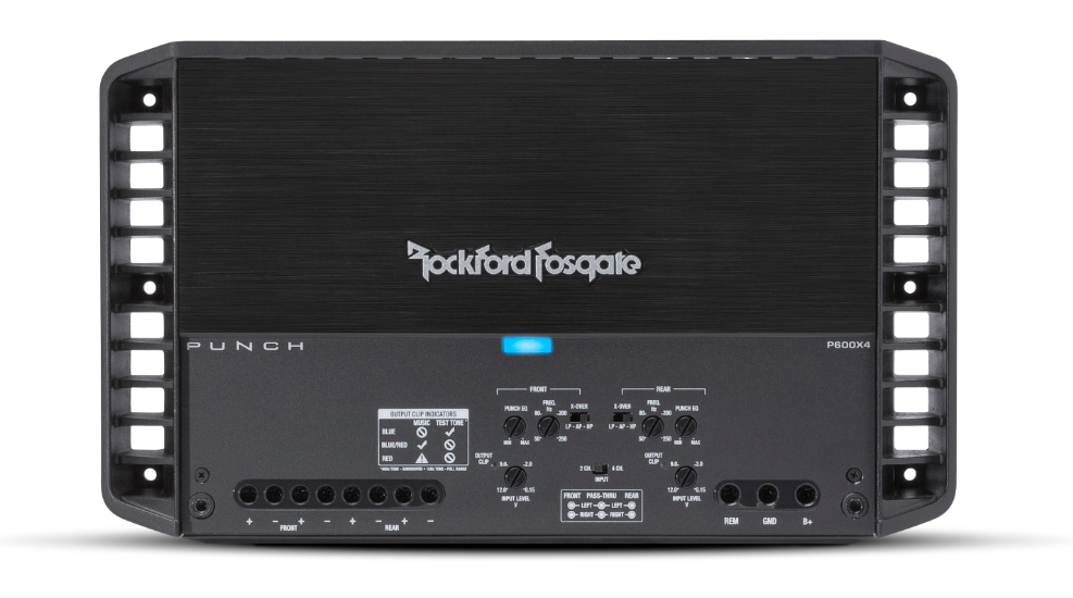 Viackanálový zosilňovač P600X4 je univerzálny a je možné ho využiť takmer v každej audio konfigurácii. Mimo štvorkanálový stereo režim je možné zapojenie oboch kanálov do mostíka a vytvoriť tak dvojkanálový vysoko výkonný zosilňovač, poprípade prevádzkovať predné stereo reproduktory so subwooferom vzadu v trojkanálovom režime. Nastaviteľná frekvenčná výhybka spodnej a hornej pásmovej priepuste a vstavaný Punch ekvalizátor umožňujú detailné nastavenie basových frekvencií, zatiaľ čo priepustné RCA konektory zaisťujú maximálnu flexibilitu v prípade, že plánujete váš systém naďalej rozširovať. Vďaka tomu je nutnosť využitia Y adaptérov minimálna.