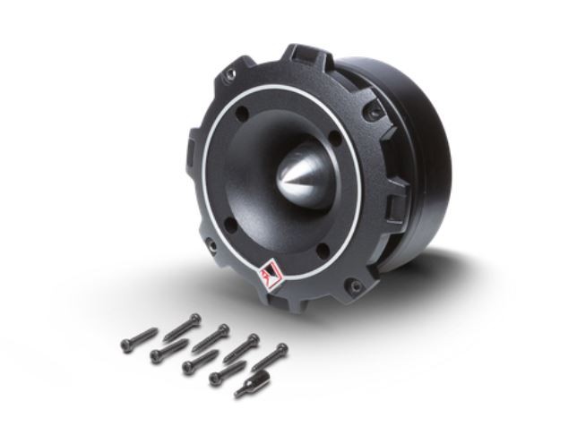 | Typy reproduktorov Koaxiálne reproduktory: Koaxiálne reproduktory sa vyznačujú konštrukciou tzv. Všetko v jednom. Výškový a stredobasový reproduktor sú v jednom koši. Výhodou je jednoduchšia montáž, ale vďaka spojeniu resp. blízkosti pásiem v jednom reproduktore, sa zvyčajne zníži kvalita zvuku. Spravidla uprostred stredobasového reproduktora, je výškový reproduktor, ktorého kmitacia cievka pracuje v druhej vzduchovej medzere spoločného magnatického obvodu. Trojpásmový koaxiálny reproduktor sa skladá zo stredobasového reproduktora, v predu na osobitnom nosníka je stredový reproduktor a samostatný výškový. Komponentné reproduktory: Komponentné reproduktory sa vyznačujú rozdelením na jednotlivé frekvenčné pásma, výškové + stredobasové + popr. basové pásmo. Jednotlivé reproduktory sa dajú umiestniť úplne oddelene, čo má za výsledok lepší zvukový aj akustický prejav. V drvivej väčšine prípadov komponentných reproduktorov je dodávaná aj externá výhybka, ktorá rozdeľuje výškové, stredové / stredobasové a u třípásma aj basové pásmo popr. umožňuje nastavenie decibelovej úrovne u výškového reproduktoru (napr. +2 dB, 0 dB, -2 dB), strmosti (napr. 6dB / okt. 12dB / okt.) či aktívne alebo bi-amp zapojenia. | Výškové |