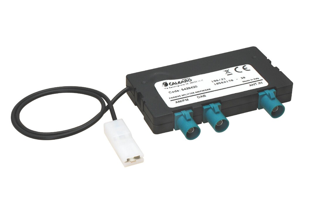 Rozbočovač rádiového signálu pre príjem AM/FM analógového rádiového signálu a DAB-DAB+ digitálneho rádiového signálu. Je určený pre aktívne alebo pasívne autoantény AM/FM pripravené pre príjem digitálneho signálu. Rozbočovač je vhodný aj pre antény s fantómovým napájaním 12 V.