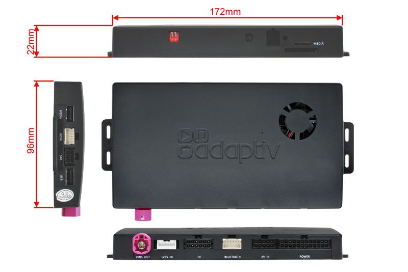 Adaptiv Lite - elektronický modul, ktorý umožňuje rozšírenie existujúcich jednotiek s OEM monitorom o prehrávanie videa, vstup USB, iPhone, SD kartu, HDMI, AUX, pripojenie zadnej parkovacej kamery, DAB rádiového tunera alebo DVB-T televízie. Všetko je ovládané pomocou OEM ovládačov a zobrazené na originálnom displeji automobilu.