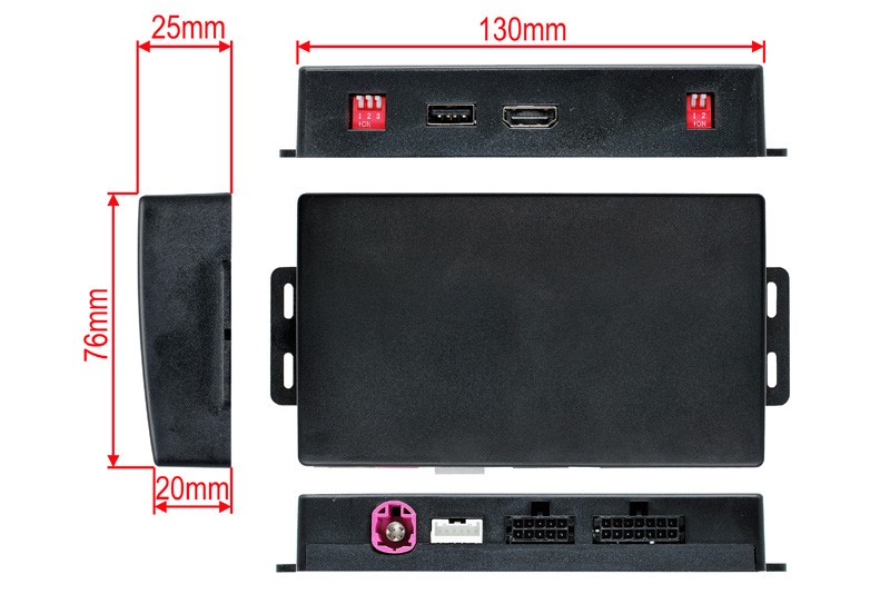 Adaptív Mini - elektronický modul, ktorý umožňuje rozšírenie existujúcich jednotiek s OEM monitorom o HDMI vstup a vstup na pripojenie prednej a zadnej parkovacej kamery. Ovládanie pomocou OEM ovládačov a zobrazenie na originálnom displeji automobilu.