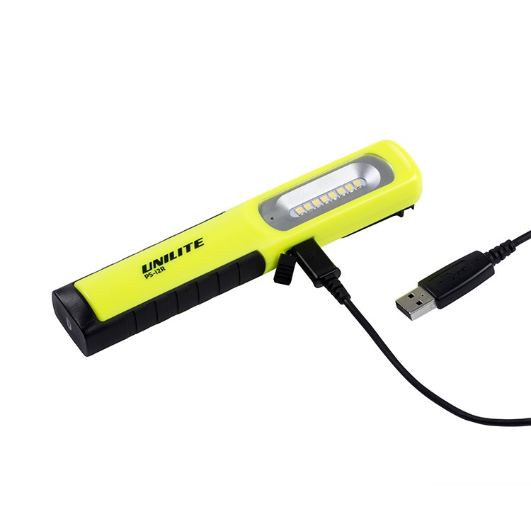 Unilite PS-I2R je nabíjateľná baterka s fluorescenčným telom pre vysokú viditeľnosť. Vďaka ôsmim bielym LED diódam (Samsung SMD LED) poskytuje maximálny výkon 275 lúmenov. Úrovne jasu sa ovládajú pomocou tlačidla, ktoré je možné ľahko ovládať jednou rukou a vďaka protišmykovej konštrukcii tela sa svietidlo pevne drží. Pre prípad, že sa PS-I2R nepoužíva, je na tele zabudovaná praktická vrecková spona, ktorá má navyše umiestnenie pre magnet pre hands free použitie. Magnetický stojan je sklopný tak, aby sa svetlo mohlo otáčať v uhle 240°, čo vám umožní nasmerovať svetlo presne tam, kde je to najviac potrebné.