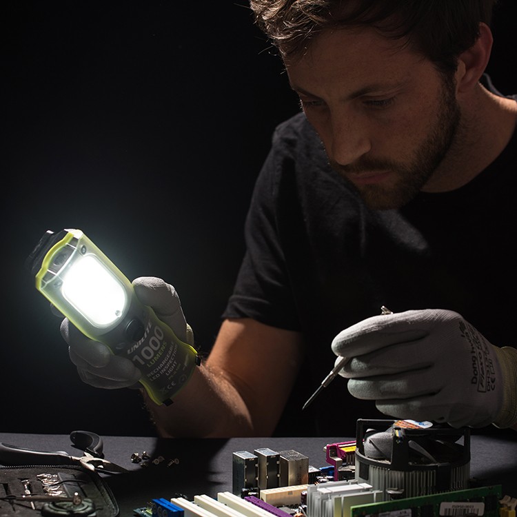 Unilite PS-IL10R s úžasným výstupom 1000 lúmenov z 27 LED SMD diód Samsung. 27 LED diód na hlavnom tele ponúka tri nastavenia jasu a vďaka širokému reflektoru vyžaruje široké svetlo, a preto je toto svetlo ideálne pre starostlivé inšpekčné práce. V hlave svietidla je tiež jedna LED dióda, ktorá poskytuje koncentrovaný lúč s dlhým dosvitom a výkonom 250 lúmenov. Svietidlo sa ovláda pomocou duálnych pogumovaných tlačidiel, pričom spodné tlačidlo ovláda hlavné LED a horné tlačidlo ovláda jednu hornú LED. Každé tlačidlo cykluje cez vysoký, stredný a nízky rýchlym stlačením príslušných LED, a ak je v akomkoľvek režime dlhšie ako 3 sekundy, ďalším stlačením svetlo zhasne.