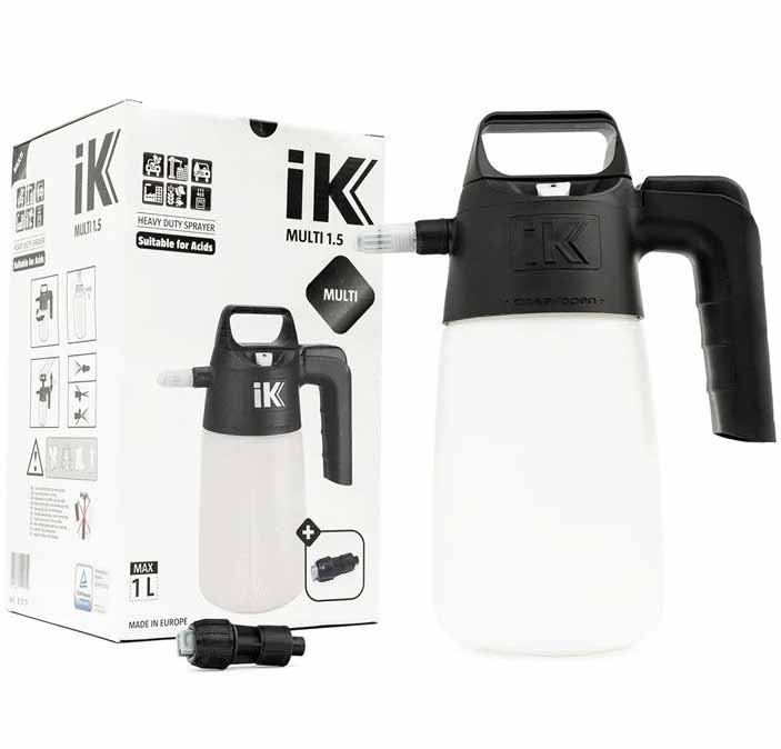 IK MULTI 1.5 Professional Sprayer je ručný profesionálny tlakový postrekovač s nádržou o objeme 1000 ml, navrhnutý pre maximálnu odolnosť voči kyselinám a ďalším agresívnym chemikáliám. Vďaka robustnej konštrukcii, spoľahlivým tesneniam a ergonomickému dizajnu je vhodný pre široké spektrum použitia v priemysle, stavebníctve, automobilovom sektore, HVAC aj v oblasti čistenia a dezinfekcie. Postrekovač je vybavený širokým plniacim hrdlom, priehľadnou nádržou pre jednoduchú kontrolu hladiny kvapaliny, bezpečnostným ventilom nastaveným na tlak 2,5 baru a dvoma tryskami (nastaviteľný kužeľ a ventilátor). Súčasťou balenia je aj príslušenstvo pre aplikácie do ťažko dostupných miest. Jednoduchá montáž a demontáž bez potreby náradia zaisťujú dlhú životnosť a pohodlné používanie.