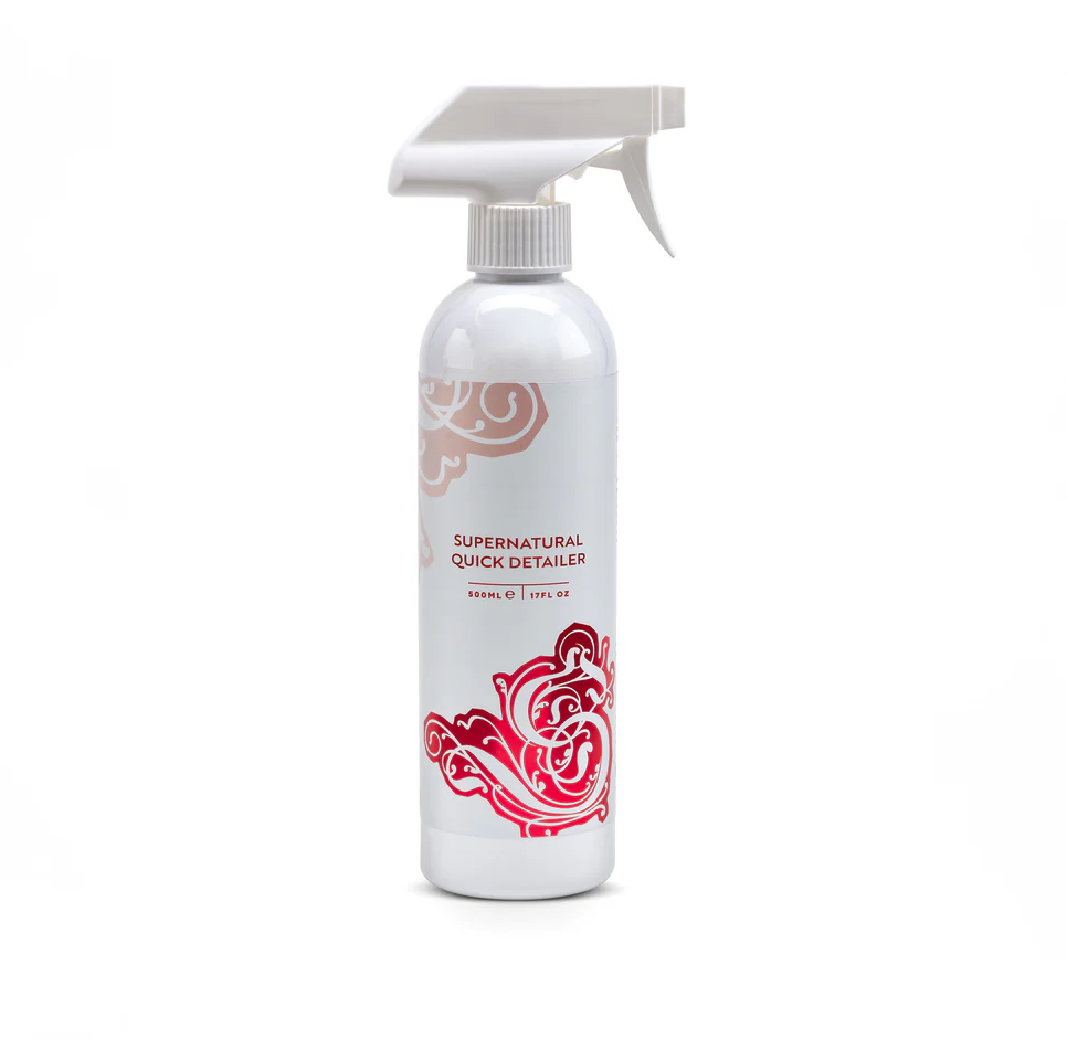 Po šampóne je pravdepodobne najpoužívanejším produktom pri starostlivosti o auto rýchly detailer. Dodáva lesk, odstraňuje prach a odtlačky prstov, a to všetko pri ochrane laku vďaka lubrikovanému „anti-swirl“ zloženiu. Supernatural Quick Detailer nie je výnimkou, dodáva lesk, jemne čistí a je dostatočne lubrikačný, aby bol bezpečný aj na tých najjemnejších povrchových úpravách. Zrieka sa však farbeniu a vôni, aby bol ešte silnejší. Menej prísad = väčší účinok účinných látok. Skvelá voľba na použitie po umývaní, aby ste sa zbavili drobných škvŕn, ktoré nepotrebujú intenzívnejšie ošetrenie (fľaky od mušiek, čerstvé dechtové škvrny), alebo ako finálny efekt. Potrebujete väčšiu ochranu? Po prirodzenej "bezsilikónovej" ochrane s 2 - 4 týždňami ochrany? Potom siahnite po Supernatural Carnauba Glaze! Alebo by ste namiesto toho potrebovali mesiace ochrany? Vyskúšajte Supernatural Acrylic Spritz!