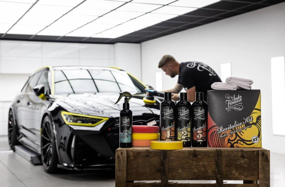 Auto Finesse Revitalise System V2 Car Polishing Kit je trojstupňový strojový leštiaci program korekcie laku s profesionálnymi výsledkami v domácich podmienkach. Tento farebne rozdelený systém bol vyvinutý v spojení s leštičkami DPX a MPX špeciálne preto, aby bola obnova, korekcia a zušľachťovanie laku čo najjednoduchšia. Obsahuje tri typy penových kotúčov špeciálne vybraných na oživenie akéhokoľvek laku, odstránenie oxidácie, hologramov, vodných škvŕn a dokonca aj škvŕn po brúsení šmirgľom. Všetky procesy korekcie laku používajú abrazívne pasty na vyrovnanie vrchnej vrstvy číreho laku cez akékoľvek vady a okolo nich, kým nedosiahnu dokonalý lak. Namiesto priameho odstránenia defektu sa tým odoberie mikroskopická vrstva celej oblasti okolo, pokiaľ defekt jednoducho nezmizne. Táto akcia má za následok vyrovnanie a vyhladenie samotnej vrchnej vrstvy mechanickým oterom, čo je proces známy ako „rezanie“. Pasty sú k dispozícii v rôznych stupňoch. To je priamo úmerné množstvo povrchu, ktorý sa očakáva, že konkrétny produkt uberie, alebo jeho „úrovni rezu“. Hrubá zmes, ako je Revitalise No:3 Restoring Compound, má vyššiu úroveň rezu ako jemná zmes, pretože pri použití odreže väčšiu časť povrchu. Dôležitá je aj agresivita používaných leštiacich kotúčov. Leštiace kotúče sa dodávajú v rôznych kvalitách a čím hustejšia je pena použitá v ich konštrukcii, tým viac tieto brúsne kotúče režú povrch, keď sa používajú v spojení s brúsnou zmesou. Na rezanie sa používa tvrdšia a hustejšia pena jednoducho preto, že prináša väčší oter, väčší kontakt s povrchom a s tým aj viac tepla. Ľahšie, menej husté penové kotúče budú vhodnejšie na zušľachtenie a konečnú úpravu laku. Práve preto sú farebne označené kotúče a pasty, aby sa zabezpečilo, že vytvoria perfektnú kombináciu pre každú fázu rezania a leštenia. Tri triedy Revitalise Compounds a Revitalise Foam Pads siahajú od kombinácie hrubej obnovovacej zmesi a kotúča (oranžová), cez strednú leštiacu zmes a pad combo (žltá), až po jemnú leštiacu zmes a kombináciu kotúčov (červená). Všetky možnosti potrebné na riešenie všetkého, a to od ľahkej oxidácie až po ťažšie škrabance a stopy po brúsení. Jednoducho postupujte podľa systému 1-2-3 a nemôžete urobiť chybu. Revitalise Compounds sú iba na korekciu a zjemnenie a neobsahujú žiadne vosky ani plnivá, vďaka čomu je tento rad perfektnou voľbou na odstránenie defektov a zjemnenie pred aplikáciou akejkoľvek ochrannej vrstvy, vrátane keramických povlakov. Sada Revitalise V2 obsahuje všetky ďalšie náležitosti (od Pad Prime až po maskovaciu pásku), ktoré sú potrebné na to, aby vás previedli procesom leštenia.