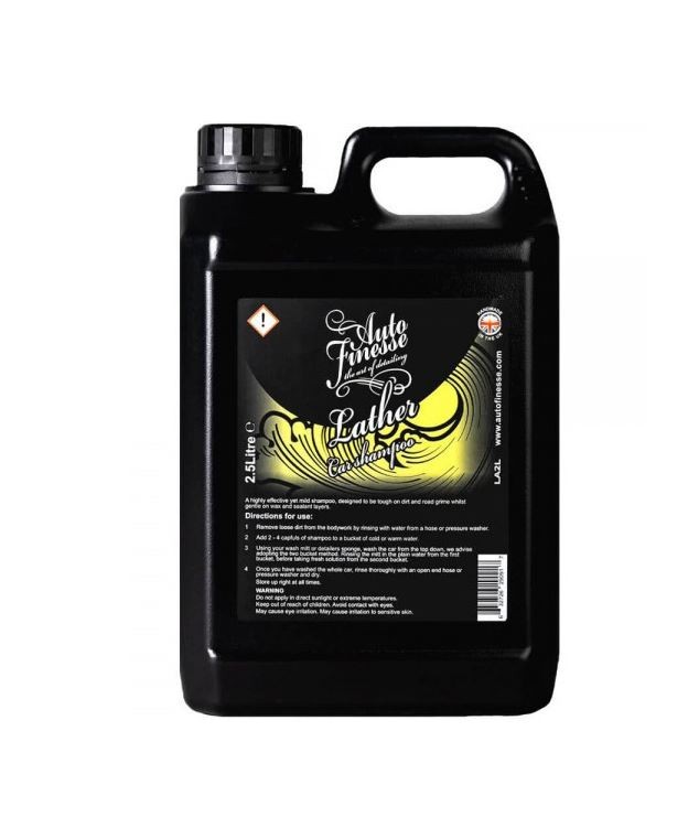Auto Finesse Lather pH Neutral Car Shampoo je pH neutrálny autošampón s vysokou lubrikačnou schopnosťou, ktorý je úplne bezpečný k predtým naneseným voskom alebo keramickej ochrane. Tento šampón môžete použiť aj na umývanie matných lakov, alebo v riedení 1:10000 ako lubrikant pod clay. Bezpečné umývanie automobilu je najdôležitejším krokom pre detailerov, čo je dôvod, prečo u Auto Finesse venovali veľa času vývoju tohto pH neutrálneho šampónu. Obsahuje pH neutrálne povrchovo aktívne látky a vysoko koncentrované mazivá. V kombinácii so správnou umývacou technikou získate silný čistiaci výkon. Pena autošampónu nie je v rozpore s voskami alebo sealantmi, vďaka čomu maximalizuje ich výkon a životnosť. Lather svojou lubricitou patrí k tomu najlepšiemu a stáva sa tak povinnou výbavou v starostlivosti o mäkké laky, ktoré sú náchylné na poškriabanie. Lather je koncentrát, ktorý sa aplikuje v zriedenej podobe s vodou. Neobsahuje žiadne ďalšie prísady, ktoré ovplyvňujú lesk. Lather môžete použiť aj na umývanie matných lakov. Vďaka svojim čistiacim vlastnostiam zvládne oživiť už zanesené voskové vrstvy a tým predĺžiť ich efektivitu a životnosť. Auto Finesse Lather je autošampón s príjemnou vôňou mandarínky. Tak ako všetky produkty Auto Finesse, tak aj Lather patrí medzi profesionálne produkty určené pre skúsených detailerov. Vďaka vysokej efektivite a jednoduchosti aplikácie dosiahne s týmto prípravkom skvelé výsledky ale aj začiatočník.