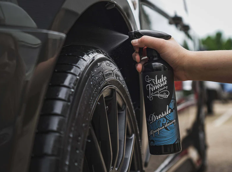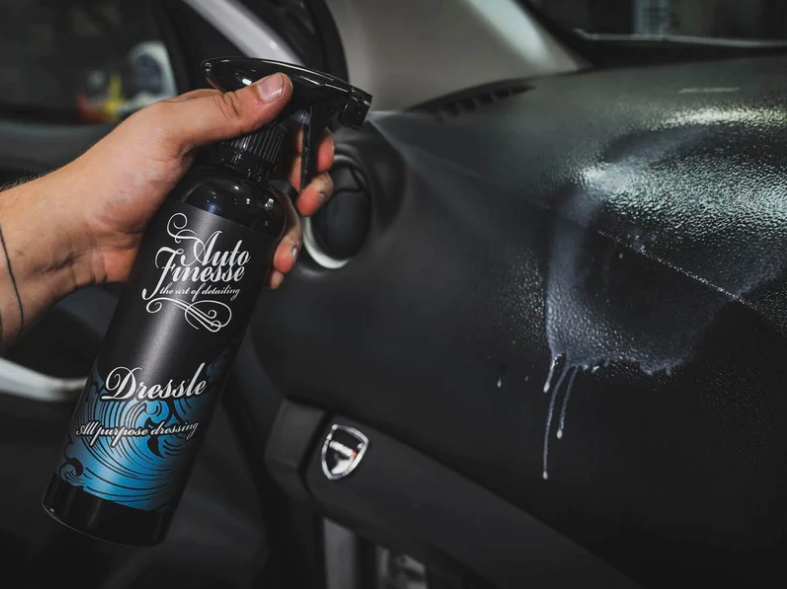 Auto Finesse Dressle All Purpose Dressing je moderná ochrana plastov a vinylových častí automobilu s tmavým, saténovým efektom. Dressle je skvelý produkt, ktorý vylepší vzhľad interiérových plastov vášho vozidla. Zanecháva nelepkavý a nemastný povrch a príjemný, prirodzene matný vzhľad. UV faktor zabraňuje vyblednutiu a udržuje všetky plasty a vinylové časti bohaté a svieže, a to po dobu až 6 mesiacov. Je možné ho použiť v motorovom priestore a interiéri na plastovej a vinylovej časti. Vďaka svojim vlastnostiam je aj ideálnym prípravkom na ošetrenie a impregnáciu vinylových striech kabrioletov. Neobsahuje žiadne vosky, oleje alebo ropné destiláty. Tak ako všetky produkty Auto Finesse, tak aj Dressle patria medzi profesionálne produkty určené pre skúsených detailerov. Vďaka vysokej efektivite a jednoduchosti aplikácie dosiahne s týmto prípravkom skvelé výsledky aj začiatočník.