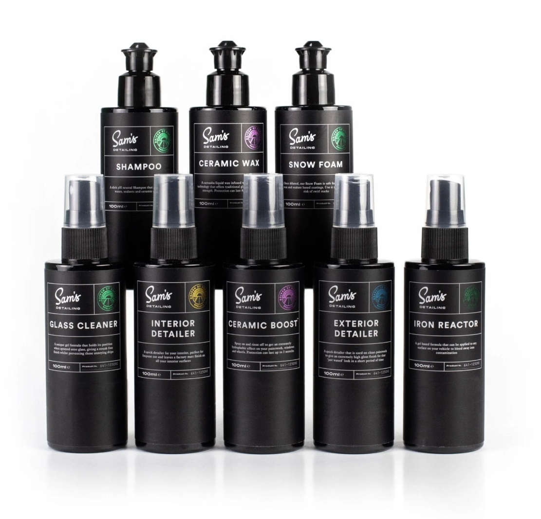 Skúšobný set 8 prípravkov Sam's Detailing, ktorý obsahuje fľaštičky po 100 ml. Sada je vhodná pre tých, ktorí si chcú vyskúšať viac prípravkov tejto značky, alebo ako darček vhodný pre každého automobilového nadšenca. Obsahom setu sú tieto prípravky Sam's Detailing: