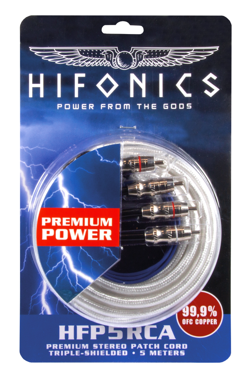Kvalitne prevedené signálové káble Hifonics v striebornej farbe vyzerajú luxusne, a nielen to, sú 3x tienené a teda dokážu dôsledne odfiltrovať všetok šum v aute. Majú poriadne kovové RCA koncovky a súčasťou je aj 0,5 mm² remote kábel. Dĺžka signálových káblov Hifonics HFP5RCA je presne 5 metrov.