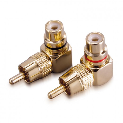 RCA redukcia pravouhlá, celokovová. Pozlátené 24karátovým zlatom. Cena za 2 kusy.