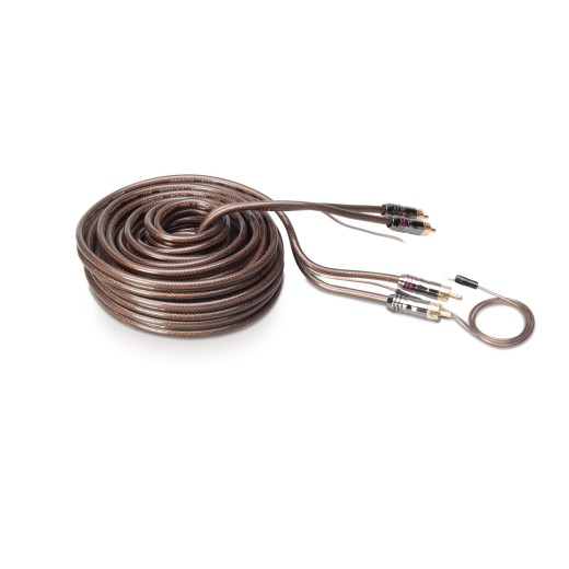 Senzačne odolné RCA káble proti rušeniu vďaka skrúteným vodičom, hliníkovej fólii a opletenému medenému plášťu, ktorý je odolný proti elektromagnetickému rušeniu. Plne kovová zástrčka so štrbinovým stredovým kolíkom a štrbinovým štítom pre bezpečné a bezchybné uchytenie. Chrómované konektory majú pozlátené kontakty, ktoré sú vo vnútri zaliate umelou hmotou. Remote kábel je na strane zosilňovača predĺžený.