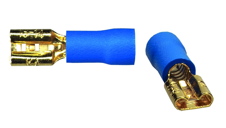 Pozlátené a izolované konektory pre ploché vstupy na reproduktoroch. V balení nájdete 10 kusov. Pre kábel s prierezom 1,5 - 2,5 mm², pre faston 4,8 mm. Farba bužírky červená.