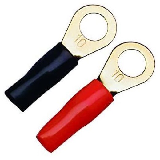 Pozlátené očká na kábel s prierezom 10 mm². Je možné spájkovať alebo stlačiť kliešťami. Balenie obsahuje 8 kusov očiek (4x červená a 4x čierna bužírka). Vnútorný priemer očka je 8,4 mm a vonkajší priemer 14 mm.