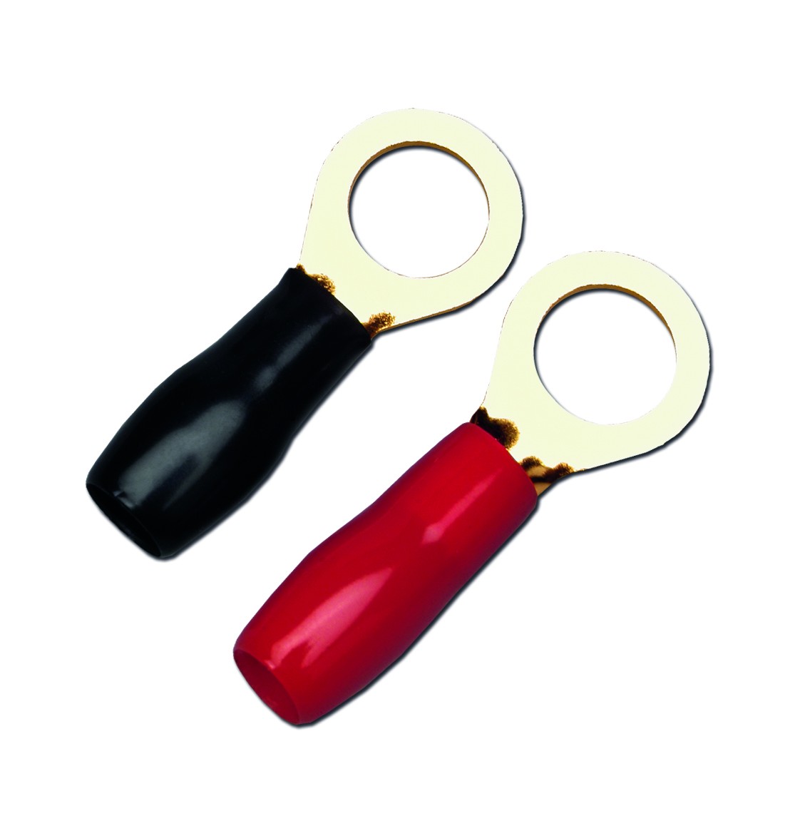 Pozlátené očká na kábel s prierezom 16 mm². Je možné spájkovať alebo stlačiť kliešťami. Balenie obsahuje 2 kusy očiek (1x červená a 1x čierna bužírka). Vnútorný priemer očka je 12 mm a vonkajší priemer potom 18 mm.