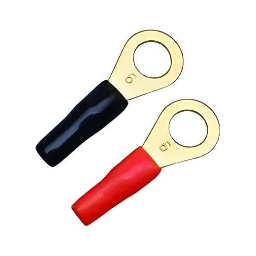 Pozlátené očká na kábel s prierezom 6,0 mm². Je možné spájkovať alebo stlačiť kliešťami. Balenie obsahuje 10 kusov očiek (5x červená a 5x čierna bužírka). Vstup 4,0 mm² až 6,0 mm². Vnútorný priemer očka je 8,4 mm a vonkajší priemer 14 mm.