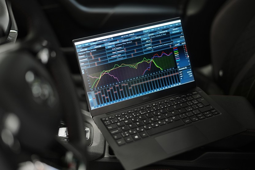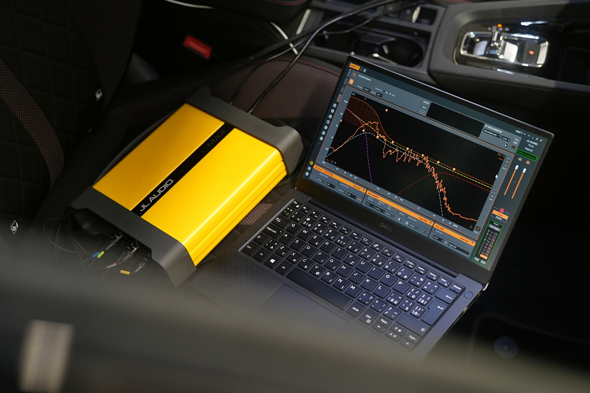 Nastáva čas na dôkladné meranie zvuku, ktoré vykonávame pomocou profesionálneho meracieho systému JL Audio Max-Kit. Vďaka prepracovanému systému s piatimi kalibrovanými mikrofónmi umožní JL Audio Max-Kit s maximálnou presnosťou zmerať frekvenčnú odozvu a fázu reproduktorov, oneskorenie signálu aj továrensky nastavený zvuk. Práve správne nastavenie oneskorenia signálu (časových korekcií) patrí k najdôležitejším parametrom ozvučenia vozidla.