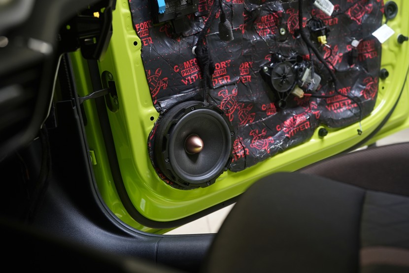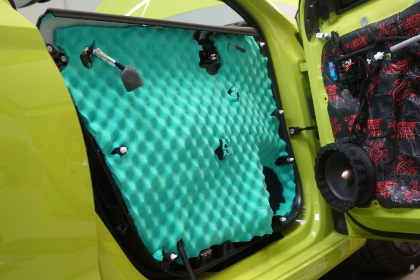 Novinkou pri všetkých našich inštaláciách je aplikácia penového prúžku okolo stredobasového reproduktora. Vďaka tomu dôjde k utesneniu medzi dvernou výplňou a reproduktorom, vďaka čomu sa všetka zvuková energia sústredí do interiéru vozidla, namiesto toho, aby sa odrážala vo vnútri dverí. Táto vychytávka zvýši účinnosť a čistotu zvukového systému.