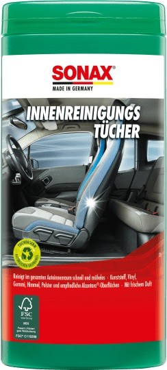 Čistiace utierky na interiér určené pre všetky časti interiéru, kokpit, plastové diely, sedačky, polstrovanie, strechovicu, kožu, zrkadlá a sklá. Po vyčistení vyleštiť suchou utierkou. V plastovej dóze 25 ks.