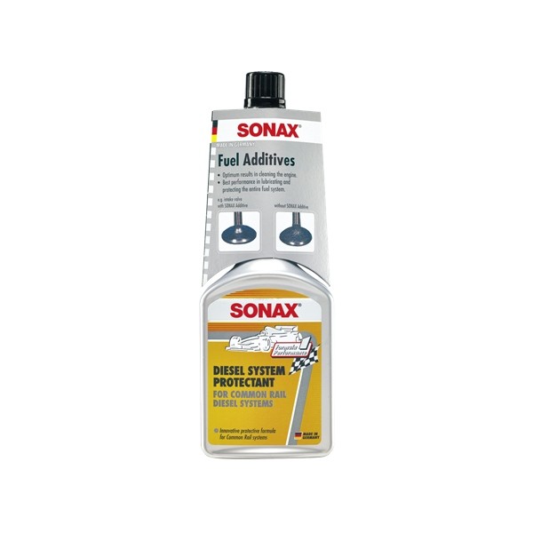 Sonax Diesel System zlepšuje kvalitu nafty a zvyšuje výkon naftových motorov. Zlepšuje mazivosť motorovej nafty. Zabraňuje vzniku usadenín spôsobených spaľovaním, najmä pri vstrekovacích tryskách. Zlepšuje skladovateľnosť motorovej nafty. Redukuje spotrebu nafty pomocou presného vstrekovania a rozptylu.