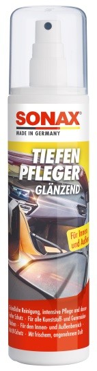 Ošetrenie plastov s vôňou - čistí a konzervuje povrch plastových a gumových dielov, oživuje farby. Povrchu dodáva vysoký lesk a chráni pred ďalším znečistením. Vhodné na ošetrenie kokpitu, pneumatík, spojlerov, ozdobných líšt a pod. Pôsobí antistaticky.