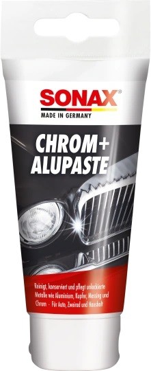 Leštiaca pasta na chróm a hliník na ošetrenie všetkých chrómových a hliníkových dielov, zabraňuje korózii, navracia pôvodný lesk. Obsahuje leštidlo pre chróm a kovové časti.