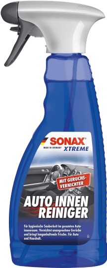 Sonax Xtreme čistič interiéru je určený pre automobily aj domácnosti. Čistí, odstraňuje a neutralizuje nepríjemné pachy a prináša dlhotrvajúcu sviežosť. Účinné zloženie zaručuje perfektnú hygienu - dokonca aj veľmi silné nečistoty z vnútorného vybavenia v aute (čalúnenie sedadiel, strešného obloženia atď.) sú jemne, ale efektívne odstránené. Súčasne eliminuje rýchlo a trvalo nepríjemné pachy, ako napr. cigaretový dym, pach zvierat a iné nežiaduce pachy.