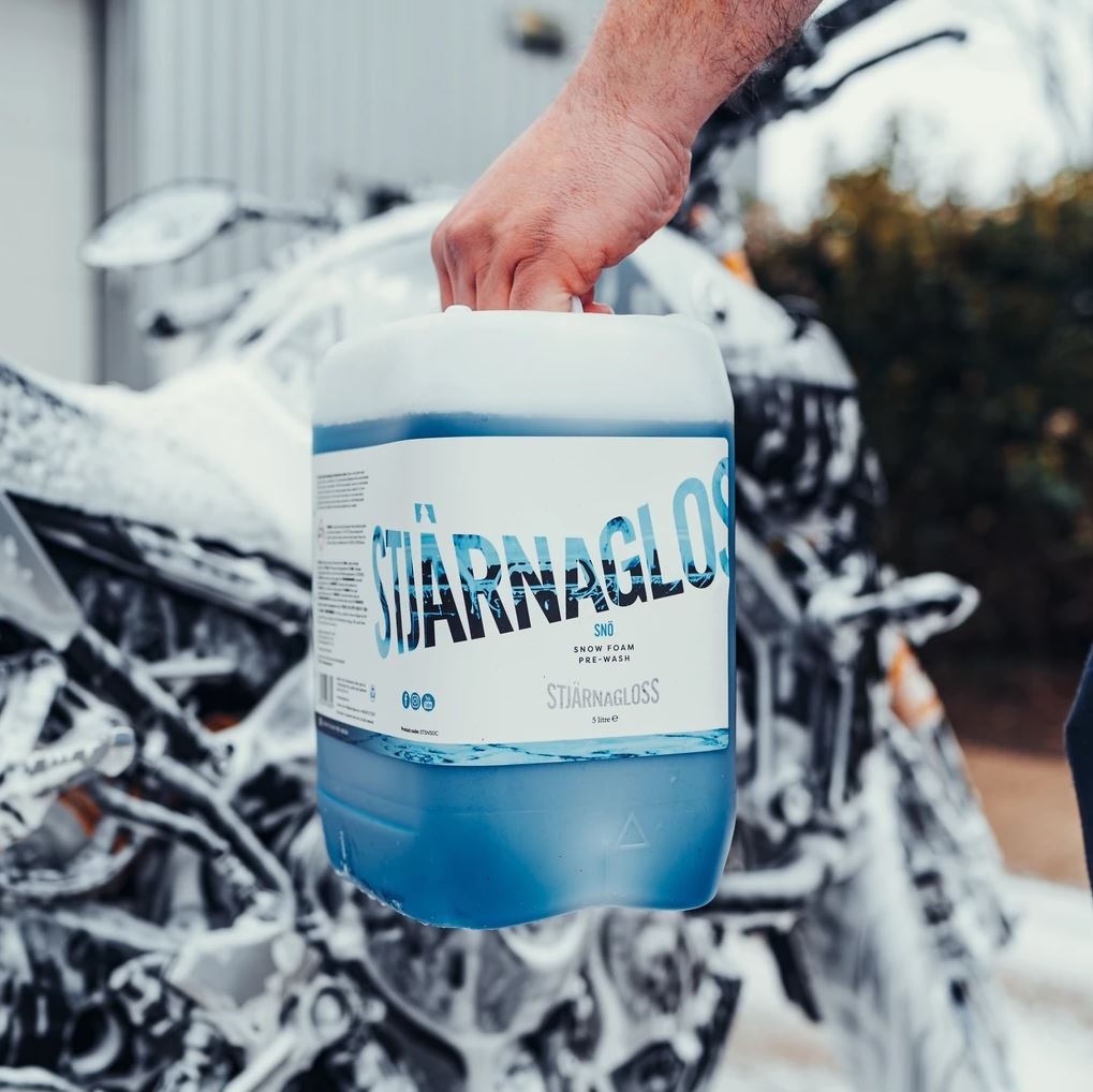 Stjärnagloss Snö je pH neutrálna, veľmi koncentrovaná aktívna pena. Po aplikácii vytvára hustú penu a poskytuje pritom vynikajúcu priľnavosť a čistiace schopnosti. Snehová pena Stjärnagloss Snö je navrhnutá tak, aby odstránila bežné nečistoty z laku a vytvorila tak priestor pre bezpečné kontaktné umývanie auta. V spojení s penovacím nadstavcom získava super koncentrované zloženie peny, maximálnu hustotu peny a priľnavosť. Na dosiahnutie najlepších výsledkov aplikujte pomocou profesionálneho penovacieho nadstavca a s tlakovou umývačkou, schopnou vyvinúť tlak 130 barov alebo viac.