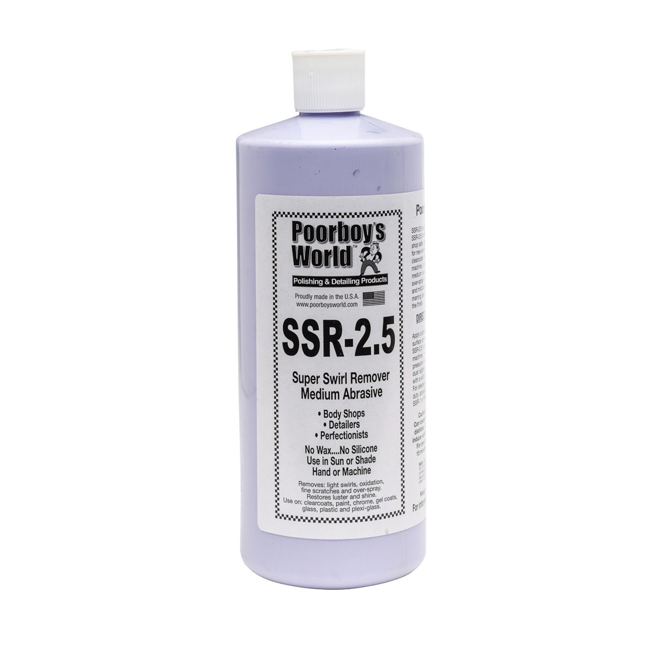 Stredne silná leštiaca pasta od spoločnosti Poorboy's. Dokáže odstrániť stredne silné až silné kruhové škrabance, oxidáciu a hravo odstráni aj vlasové škrabance. Možno ju použiť na lak, chróm, sklo, plast alebo dokonca plexisklo. Môže poskytnúť veľmi dobrú "povrchovú úpravu". Pasta SSR 2,5 obnovuje lesk. Môže sa používať na slnku aj v tieni. Určite však odporúčame aplikovať ju počas strojového leštenia.