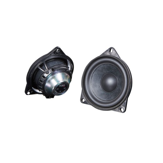 | Typy reproduktorov Koaxiálne reproduktory: Koaxiálne reproduktory sa vyznačujú konštrukciou tzv. Všetko v jednom. Výškový a stredobasový reproduktor sú v jednom koši. Výhodou je jednoduchšia montáž, ale vďaka spojeniu resp. blízkosti pásiem v jednom reproduktore, sa zvyčajne zníži kvalita zvuku. Spravidla uprostred stredobasového reproduktora, je výškový reproduktor, ktorého kmitacia cievka pracuje v druhej vzduchovej medzere spoločného magnatického obvodu. Trojpásmový koaxiálny reproduktor sa skladá zo stredobasového reproduktora, v predu na osobitnom nosníka je stredový reproduktor a samostatný výškový. Komponentné reproduktory: Komponentné reproduktory sa vyznačujú rozdelením na jednotlivé frekvenčné pásma, výškové + stredobasové + popr. basové pásmo. Jednotlivé reproduktory sa dajú umiestniť úplne oddelene, čo má za výsledok lepší zvukový aj akustický prejav. V drvivej väčšine prípadov komponentných reproduktorov je dodávaná aj externá výhybka, ktorá rozdeľuje výškové, stredové / stredobasové a u třípásma aj basové pásmo popr. umožňuje nastavenie decibelovej úrovne u výškového reproduktoru (napr. +2 dB, 0 dB, -2 dB), strmosti (napr. 6dB / okt. 12dB / okt.) či aktívne alebo bi-amp zapojenia. | Stredové |