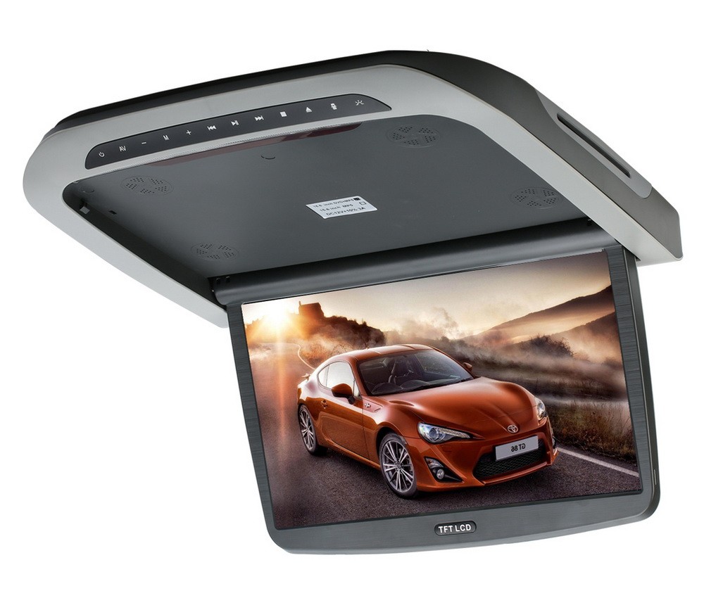 Stropný výklopný monitor 15,6" šedý, s DVD prehrávačom, čítačkou SD / MMC kariet, USB portom, HDMI a so zobrazením 16: 9. Diaľkové ovládanie s vstavanou herné konzol.Technické parametre monitora